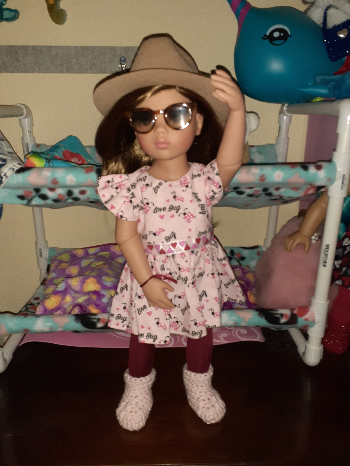 'Crikey, it's cold in this country,' they heard her say through the door. Mommy helped her through the door. 'Come in out of the cold, Andi,' she exclaimed taking her suitcase, 'it's wonderful to finally see you!' Andi came in shaking snow from her slip on shoes. They'd been a good choice for the airport since they asked you to take off your shoes. But she hadn't planned on all the snow. She came through the gate and leaned her tired doll body against the bars. She looked up. So this was Andi.